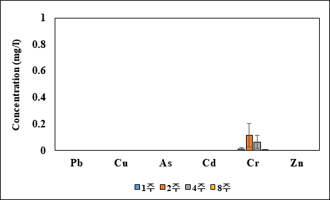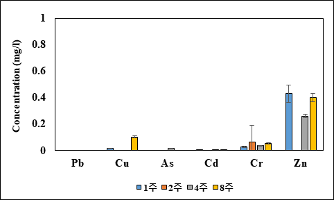 두 번째 논문인 “Assessment of Long-Term Leaching Characteristics of Mine Backfill Materials” (Resources Recycling)은 산업 부산물을 활용한 광산 채움재(mine backfill material)의 장기 환경 안정성을 평가한 연구입니다. 발전소 비산재(40–50%), 저품위 석회석(약 40%), 그리고 저탄소 공정으로 제조된 그린 시멘트(10–20%)를 혼합하여 제작한 채움재를 대상으로, 단기 용출시험(KSLT, TCLP)과 PHREEQC 기반 장기 지화학 모델링을 수행하였습니다. 단기 실험에서는 대부분 항목이 폐기물관리법상 기준을 만족하였으나 일부 시료에서 총 Cr과 As가 일시적으로 먹는물 수질기준을 초과했습니다. 반면, 장기 모델링에서는 주요 중금속(Pb, Cd, Cu, Zn)의 침출 농도가 모두 0.010 mg/L 미만으로 안정화되어, 고알칼리 조건에서의 화학적 안정성이 확인되었습니다. 본 연구는 산업 부산물을 활용한 광산 채움재의 장기 환경 거동을 정량적으로 규명하여, 자원순환 및 산업 부산물 재활용 기술의 실용화 가능성을 뒷받침하는 의미 있는 결과를 제시하였습니다.
